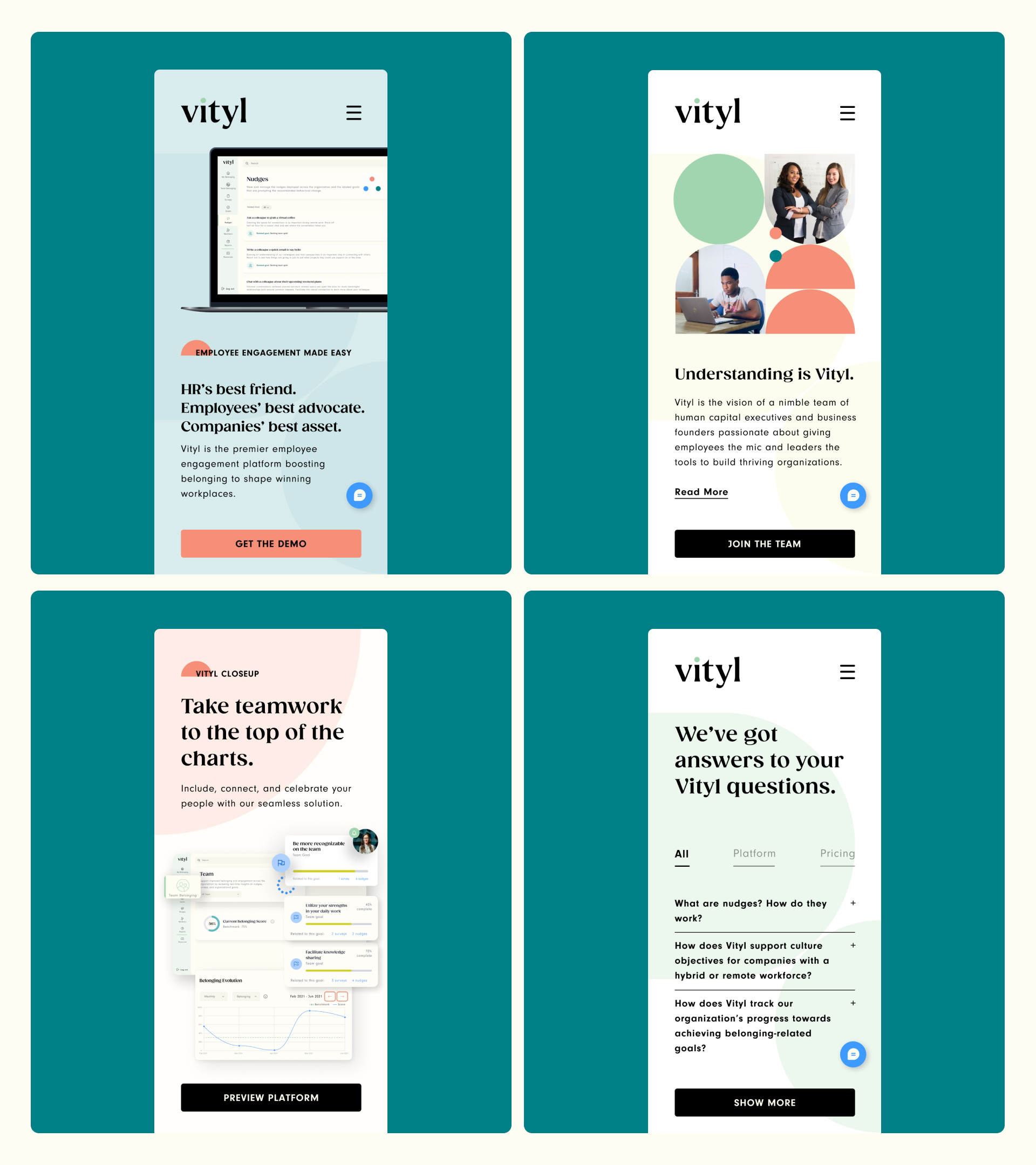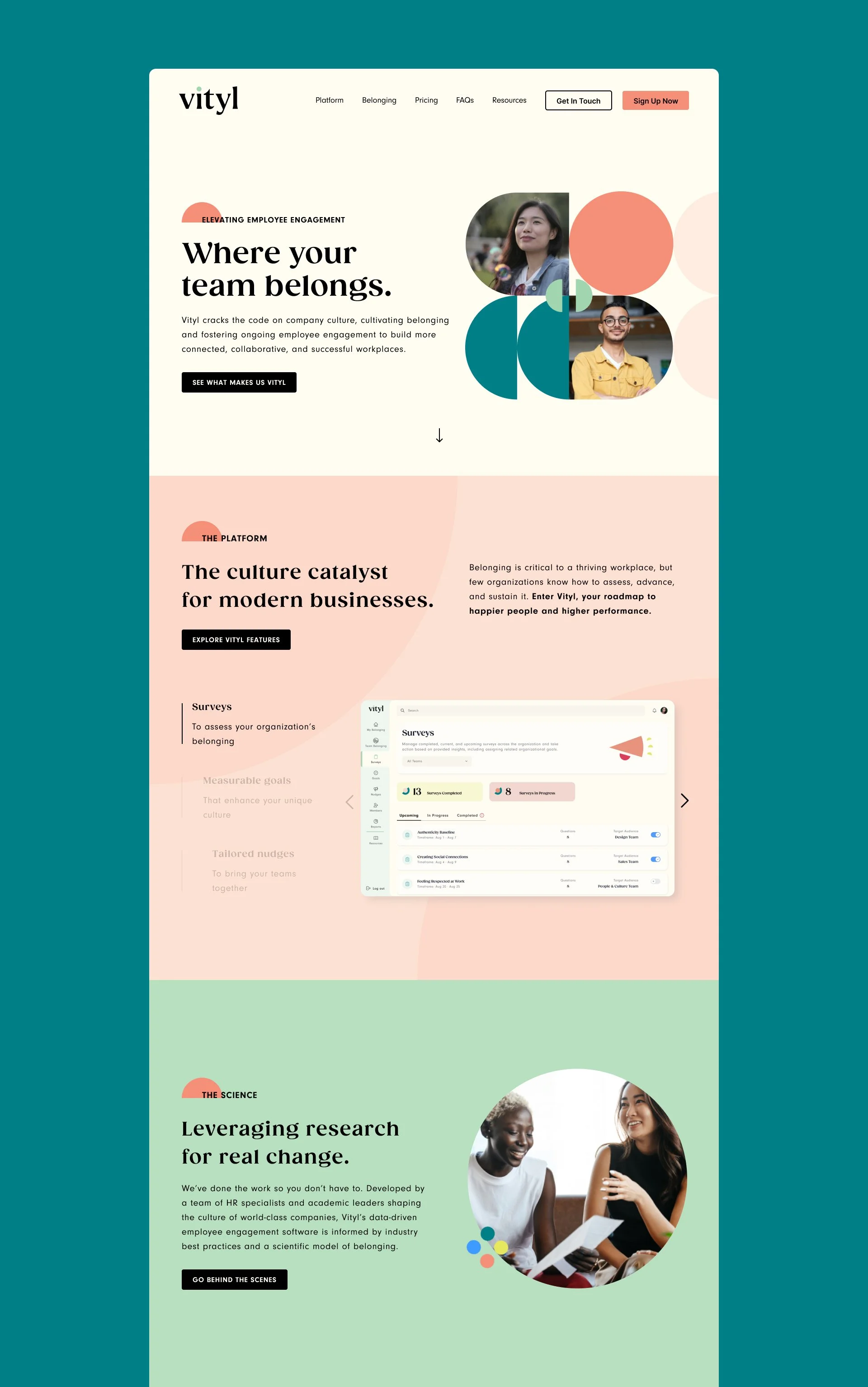 In advance of their product launch, Vityl approached Wunderdogs to help them create a new website for their engagement platform. The Vityl team wanted the brand to be seen as pioneers in bringing people together. Through a unique platform approach, they created a tool to help build thriving organizations through connection.